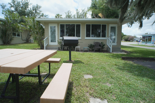 Sleeps up to 4 people. The small house has a screen in Patio.1 Bedroom & 1 Bath